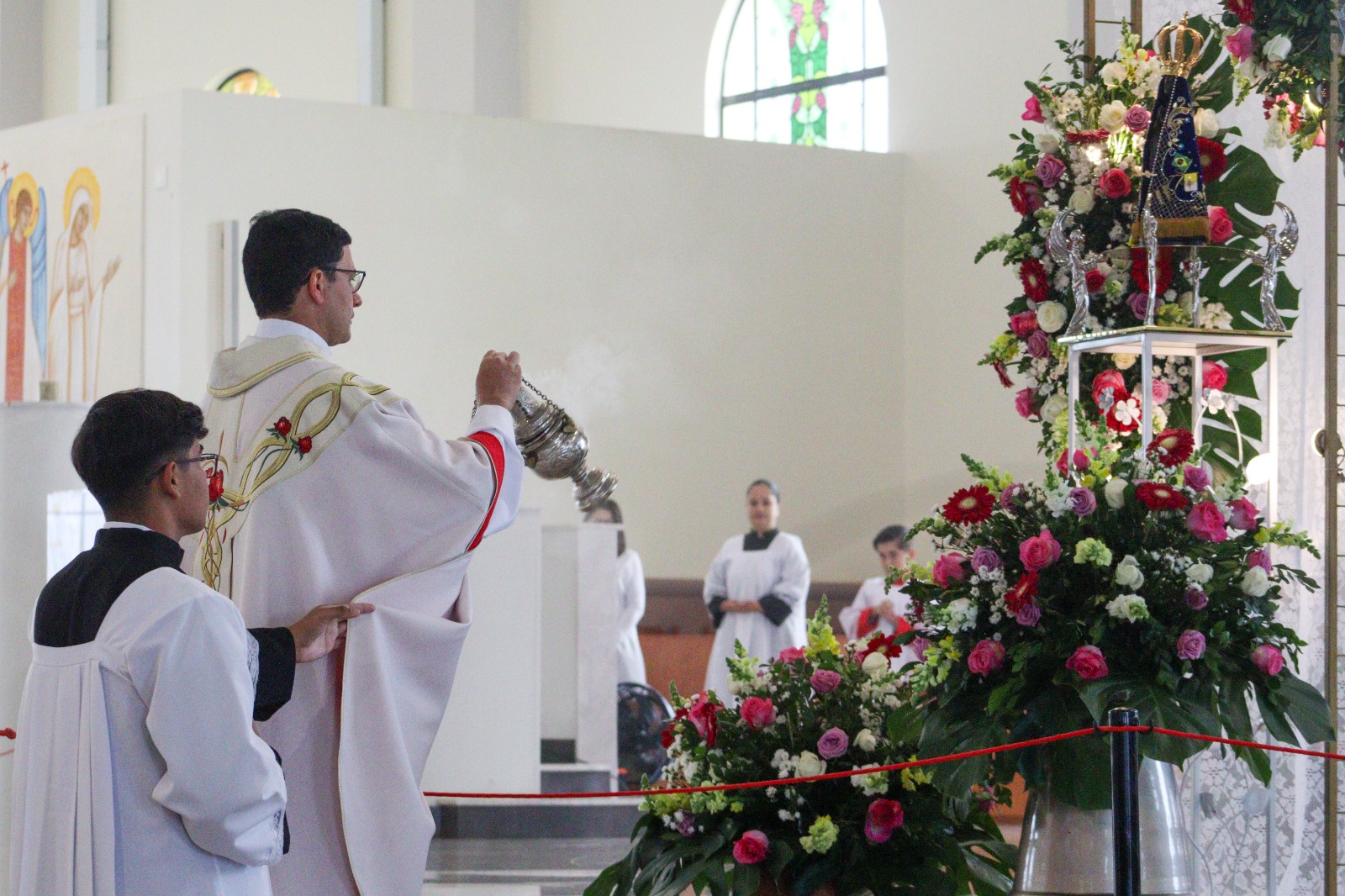Padre Ferdinando Mancilio, prefeito de Igreja do Santuário Nacional, conduziu a imagem até o Santuário, proporcionando aos fiéis, junto à Padroeira do Brasil, um dia marcado pela fé e pela oração.