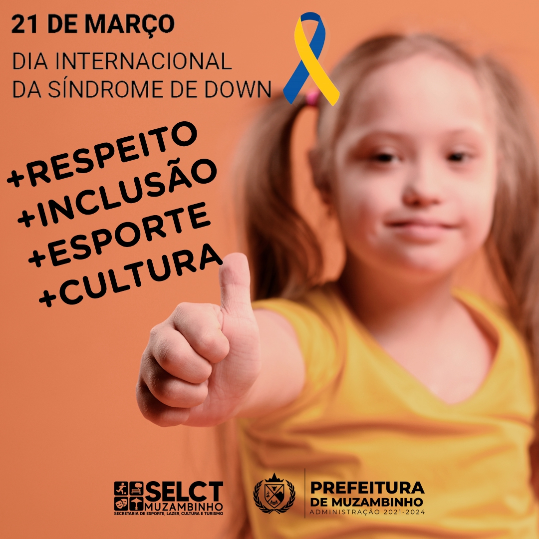 Hoje, dia 21 de março, é o Dia Internacional da Síndrome de Down e a Secretaria do Esporte, Lazer, Cultura e Turismo de Muzambinho convida a toda a comunidade para celebrar, refletir e se conscientizar sobre essa data.