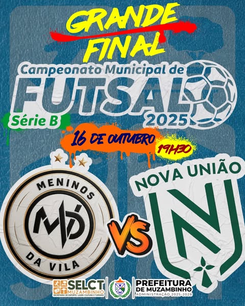 Chegou a hora mais esperada da temporada! Depois de semanas de jogadas incríveis, viradas eletrizantes e muita emoção na quadra, o Campeonato Municipal de Futsal 2025 chega ao seu grande desfecho nesta quinta-feira, 16 de outubro, na Praça de Esportes de Muzambinho. Prepare o coração, porque a noite promete ser histórica!