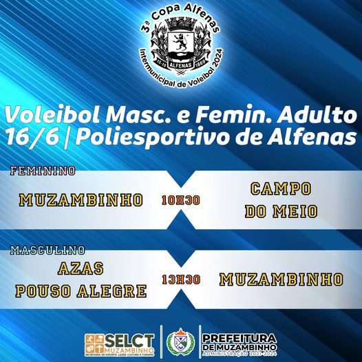 Confira os eventos esportivos com participação de equipes de Muzambinho neste domingo, 16 de junho.