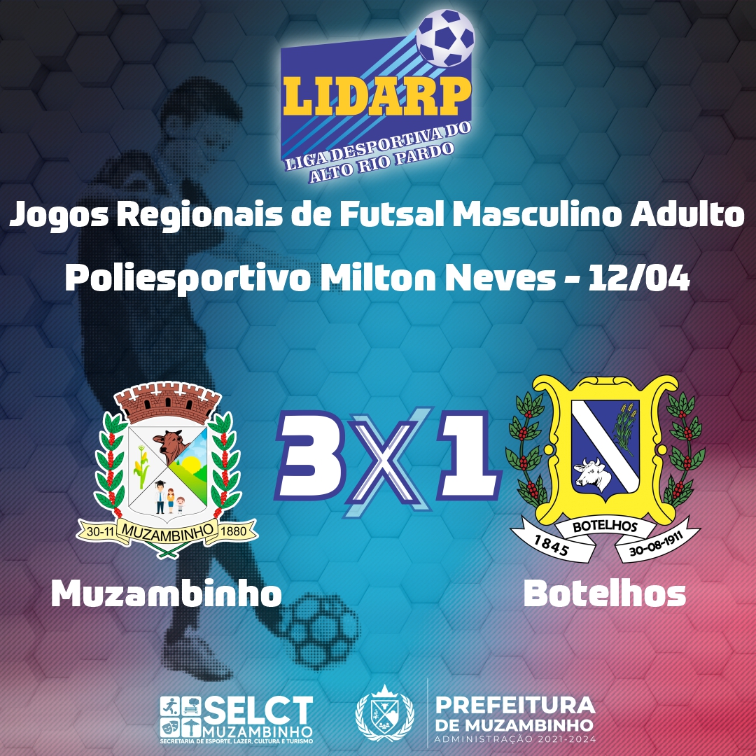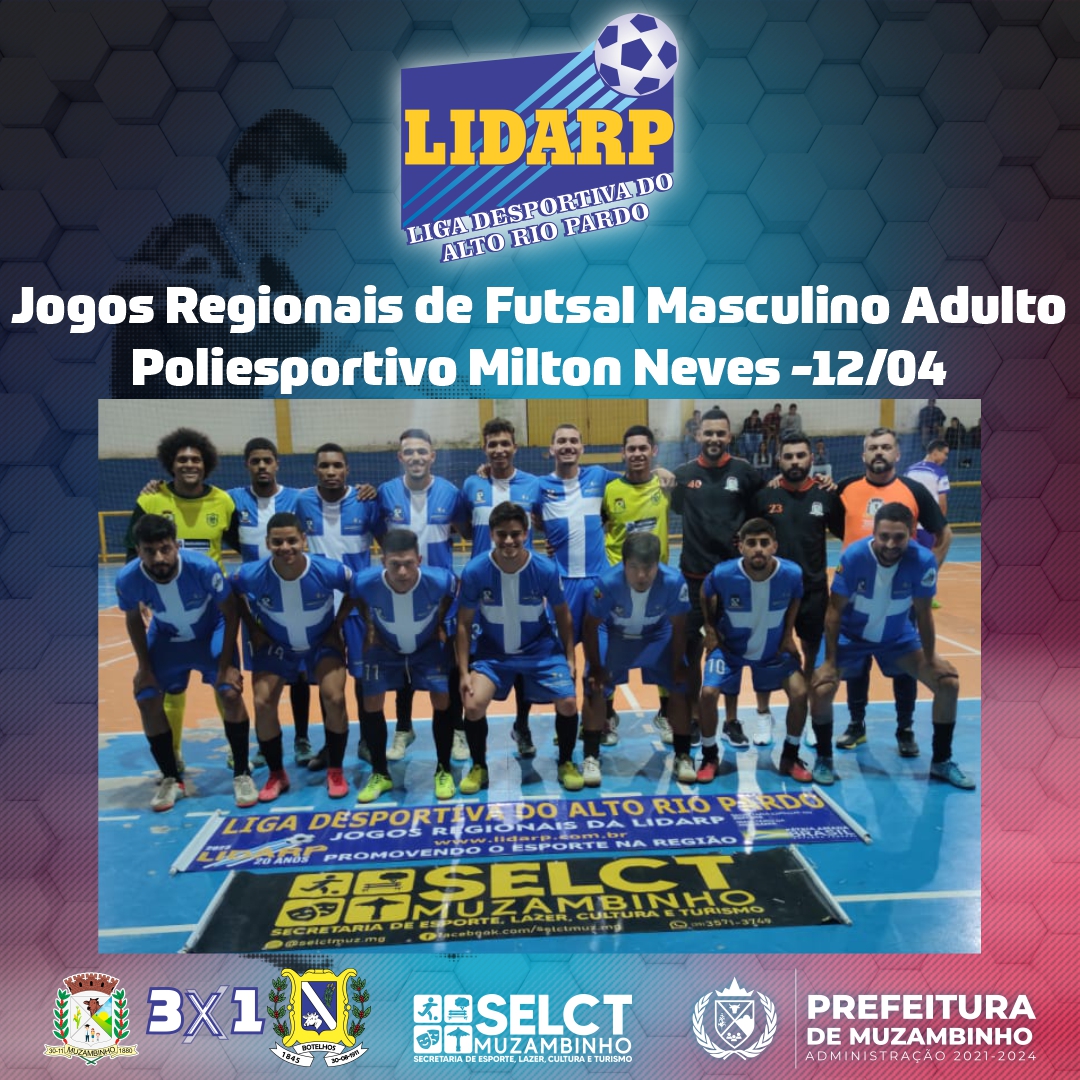 No dia 12 de abril, Muzambinho foi palco dos Jogos Regionais de Futsal Masculino Adulto no ginásio Poliesportivo Milton Neves.