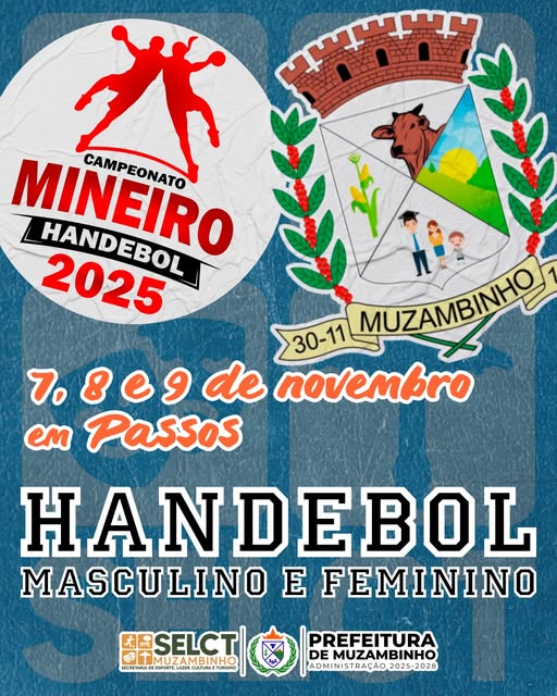 Entre os dias 7, 8 e 9 de novembro, as equipes Adulto Masculina e Feminina de Handebol de Muzambinho entram em quadra para representar o município na fase regional do Campeonato Mineiro de Handebol 2025, competição oficial da Federação Mineira de Handebol (FMH).