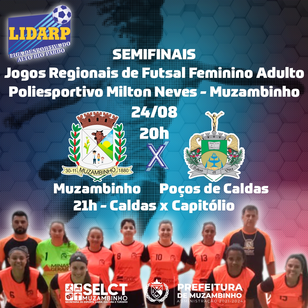 Nesta quinta-feira (24), Muzambinho sedia a fase semifinal dos Jogos Regionais de Futsal Feminino Adulto da LIDARP – Liga Desportiva do Alto Rio Pardo. Confira os jogos que acontecem no ginásio poliesportivo Milton Neves.