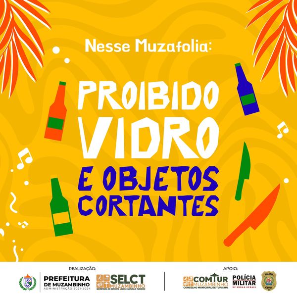 – É estritamente proibido trazer objetos de vidro, como garrafas e copos.