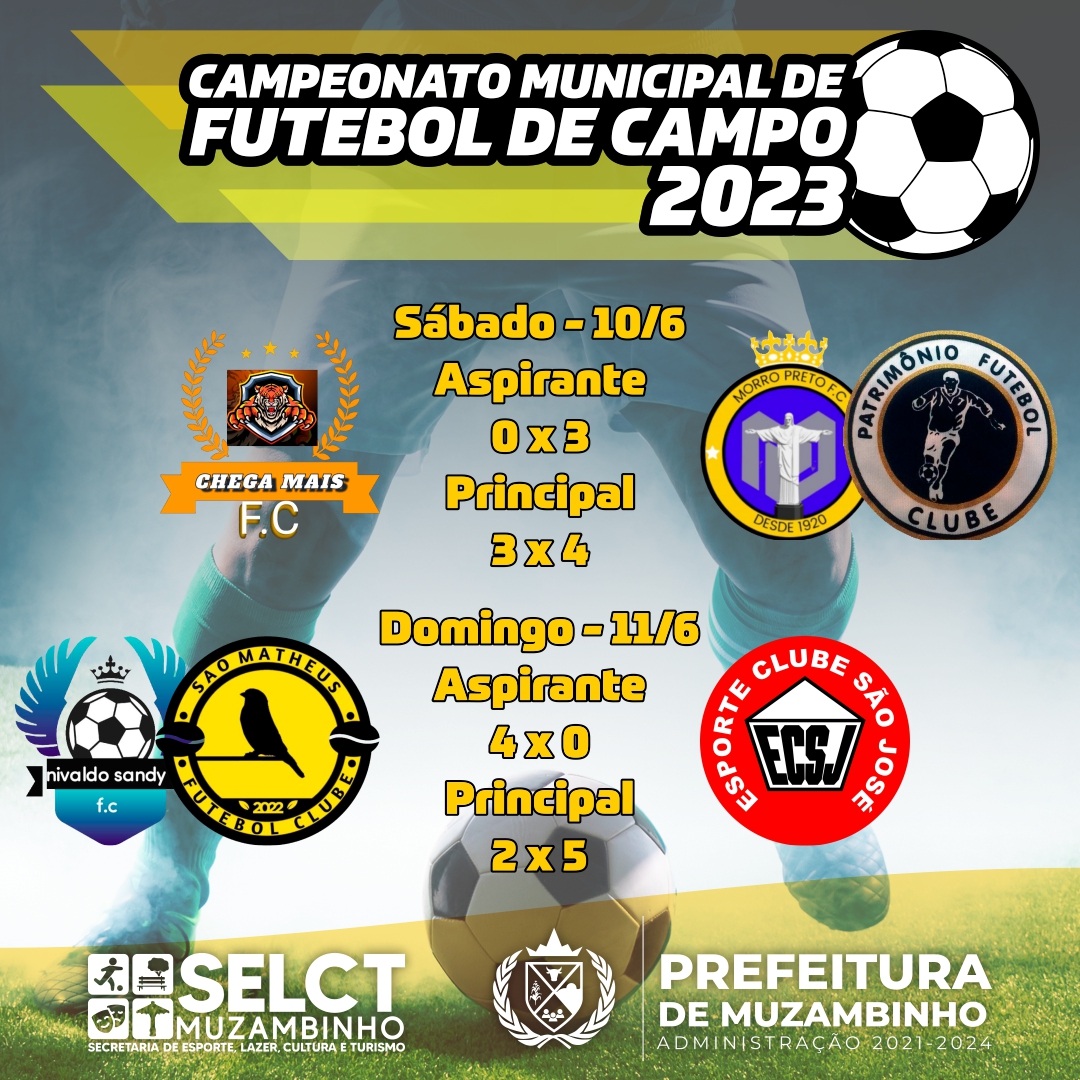 Confira os resultados das partidas do Campeonato Municipal de Futebol de Campo 2023 disputadas no último final de semana no Estádio Prof. Antônio Milhão.