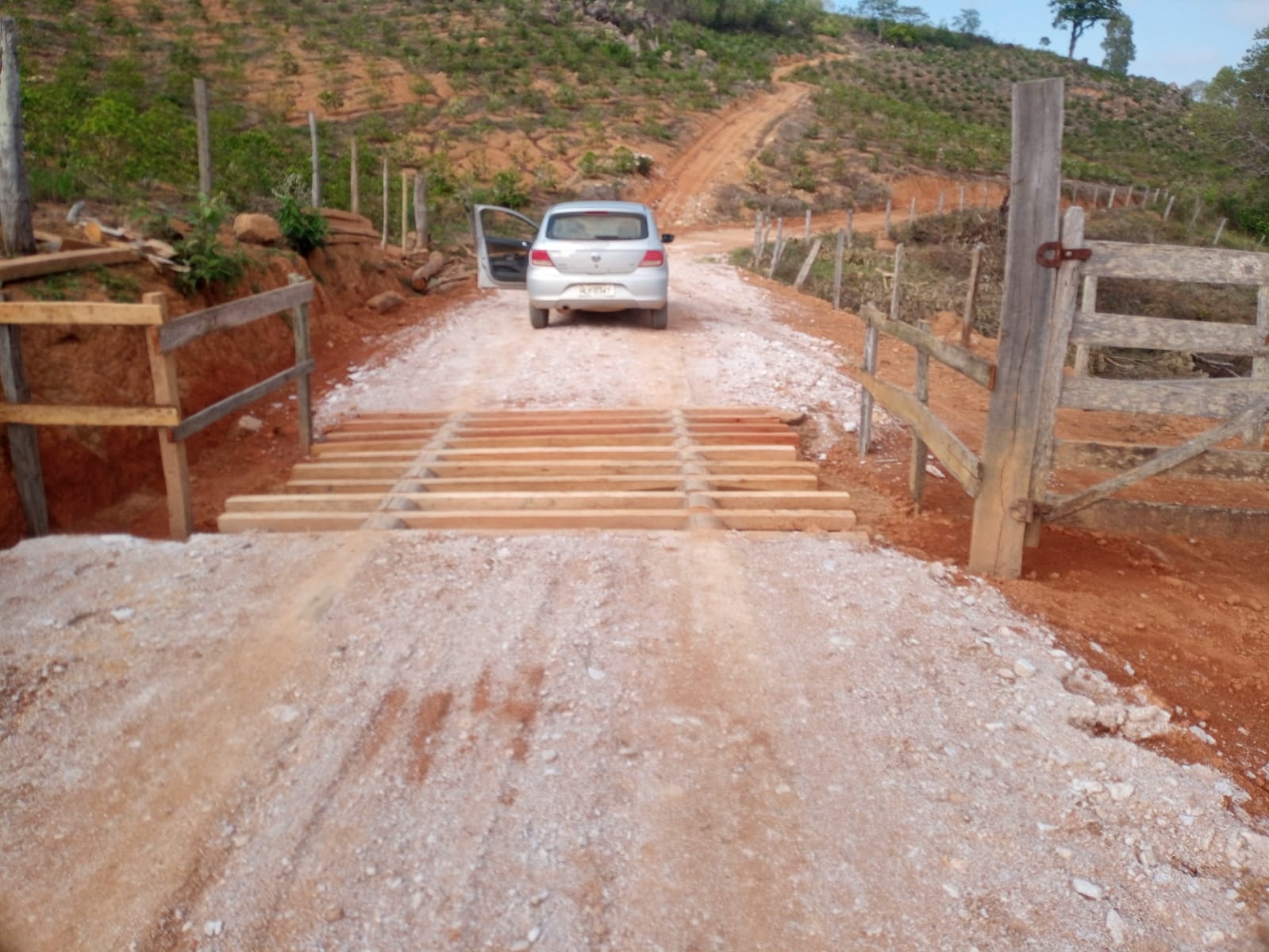 Outra parte da equipe foi no bairro Córrego da Onça e trocou travessas de mata-burro quebrado. O diretor Marcelo Araújo passei por um mata-burro que foi feito sexta-feira para verificar como tinha ficado o aterro. Por fim, o setor arrumou uma rampa de acesso de uma propriedade na Fazenda São José, sendo que a prefeitura forneceu a terra para o aterro da estrada principal!