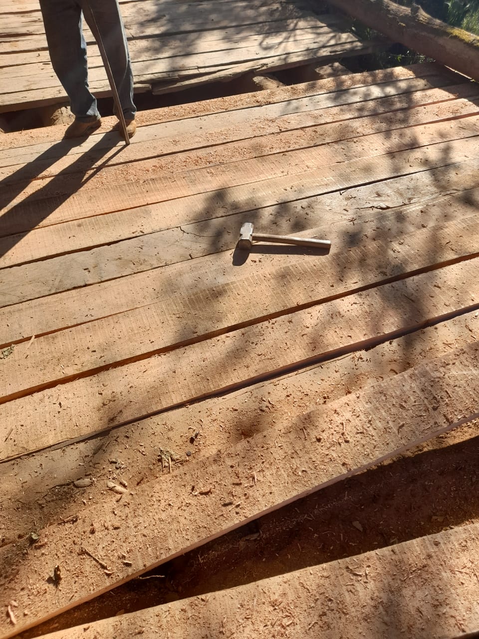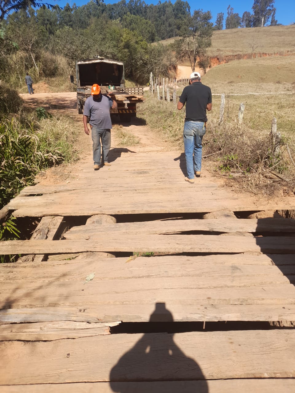 Outra parte da equipe fez manutenção com trocas de pranchas na ponte do bairro Muzambo que dá acesso à divisa de município com Guaxupé. E também a troca de prancha na ponte do bairro do Moçambo, sentindo ao bairro Mandasaia.