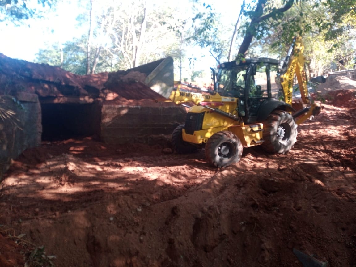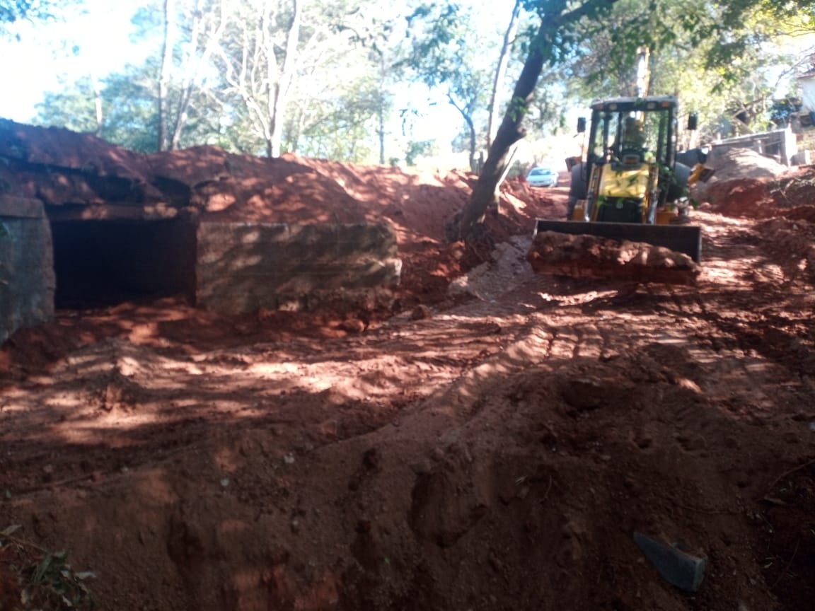 Nesta quinta-feira (23), o Departamento de Pontes e Mata-Burros de Muzambinho, Setor 2, finalizou a colocação de pedras na base da ponte do bairro Retiro, num total de 18 caminhões transportados. Com isso, o setor de Obras vai começar a parte de ferragem e parede de blocos .