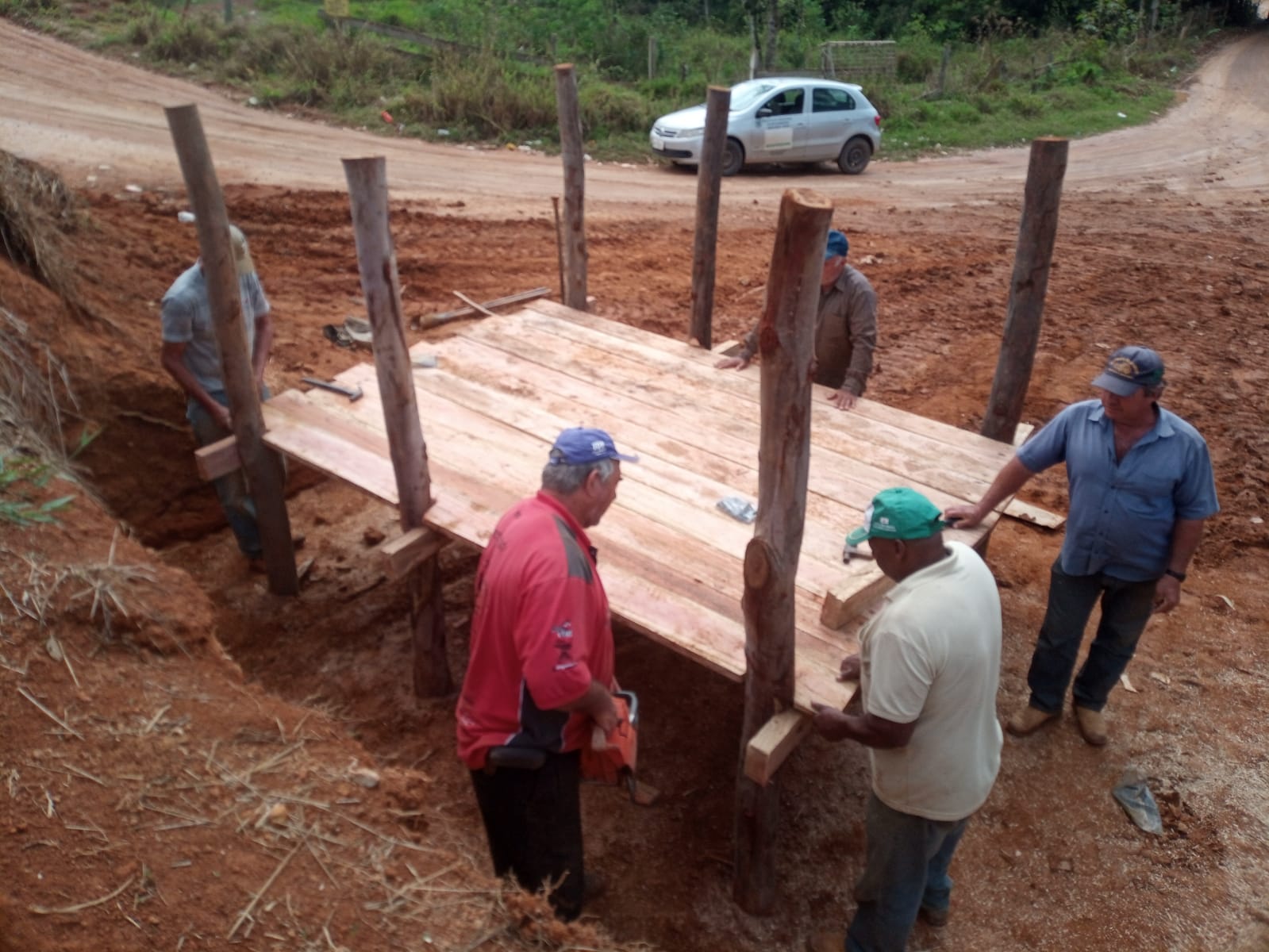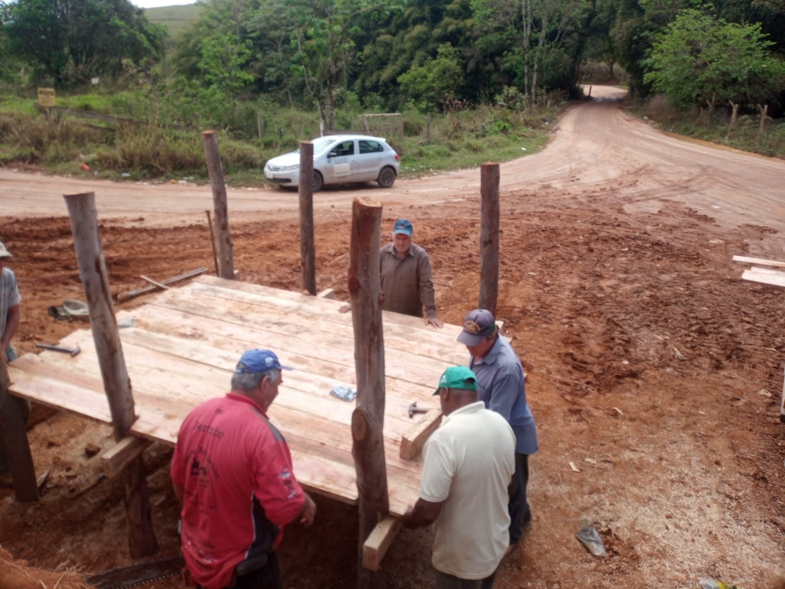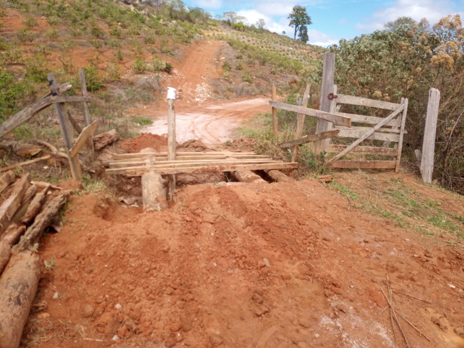 Outra parte da equipe levou cascalho até o bairro Córrego da Prata. Marcelo Araújo ainda fez uma avaliação de um novo mata-burro na estrada principal. Este mata-burro deverá ser construído ainda nesta sexta-feira em local próximo à propriedade do Sr. João Vieira.