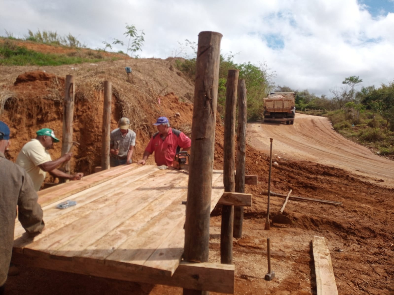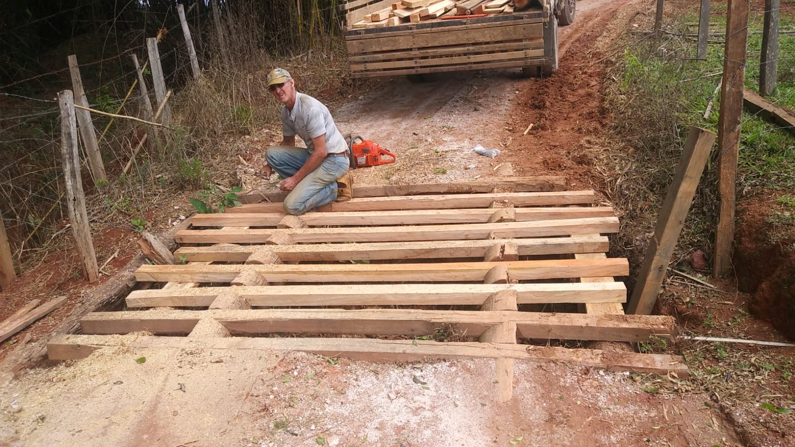 Por fim, outra parte da equipe este na parte da tarde nos bairros Morro Preto e São Domingos trocando travessas de mata burro que um caminhão de adubo passou e quebrou tudo! E servidor da equipe permaneceu serrando madeira o dia todo no almoxarifado de depósito de madeiras!