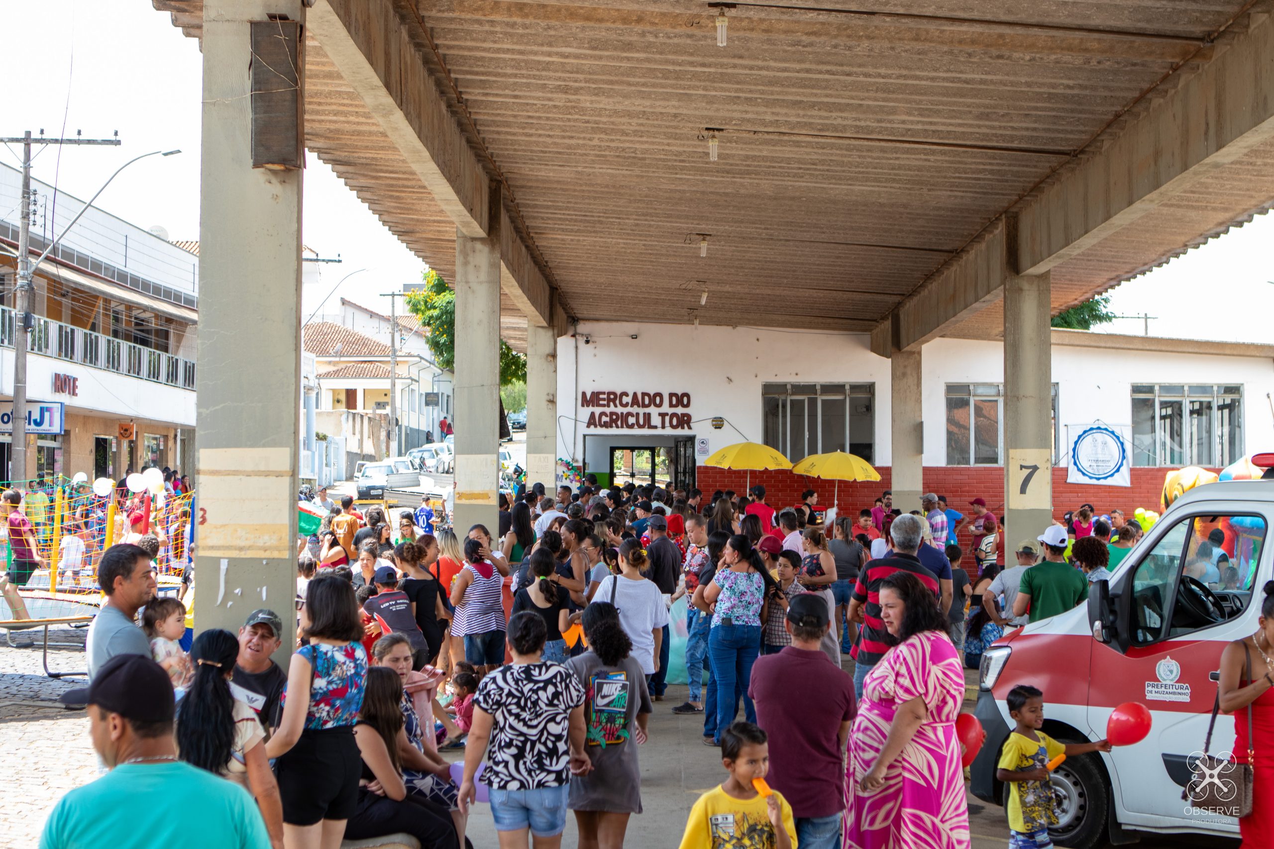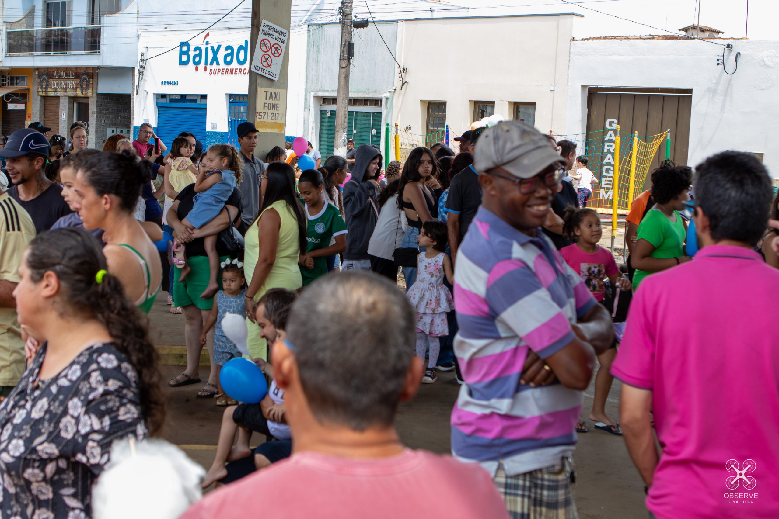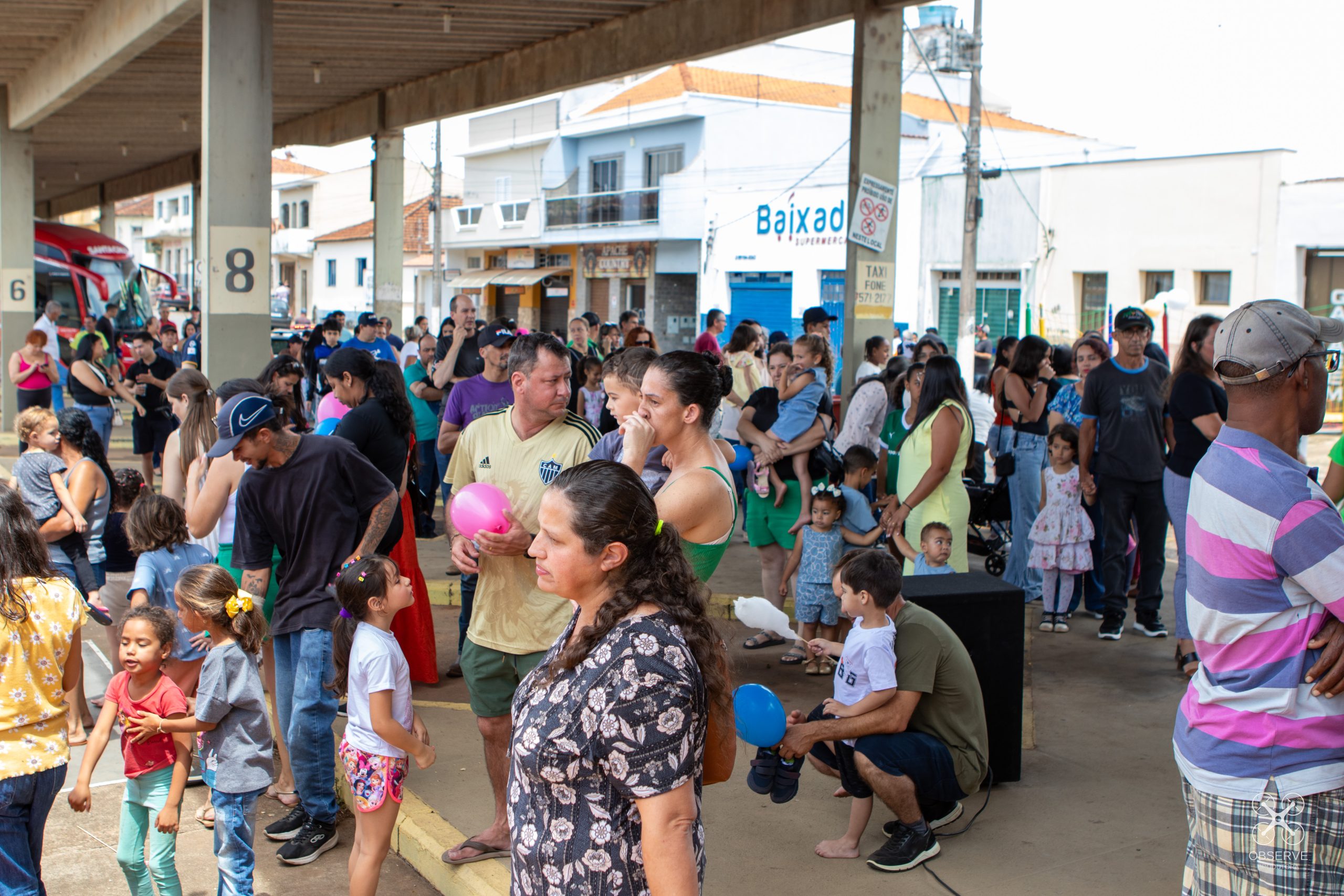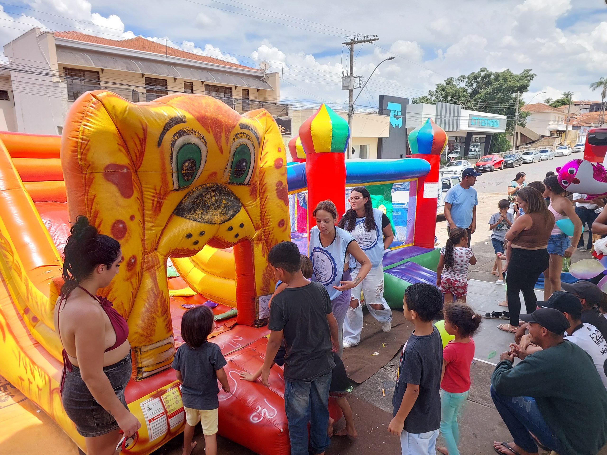 Em seguida, crianças e famílias de todos os bairros da cidade tem livre acesso à festa das crianças, recebendo carinho e atenção. Além de brinquedos, foram distribuídos 2200 pães, 2000 sorvetes, 70 fardos de 6 unidades de guaraná, pipoca e algodão doce. O som esteve a cargo do competente Cláudinei Romão.