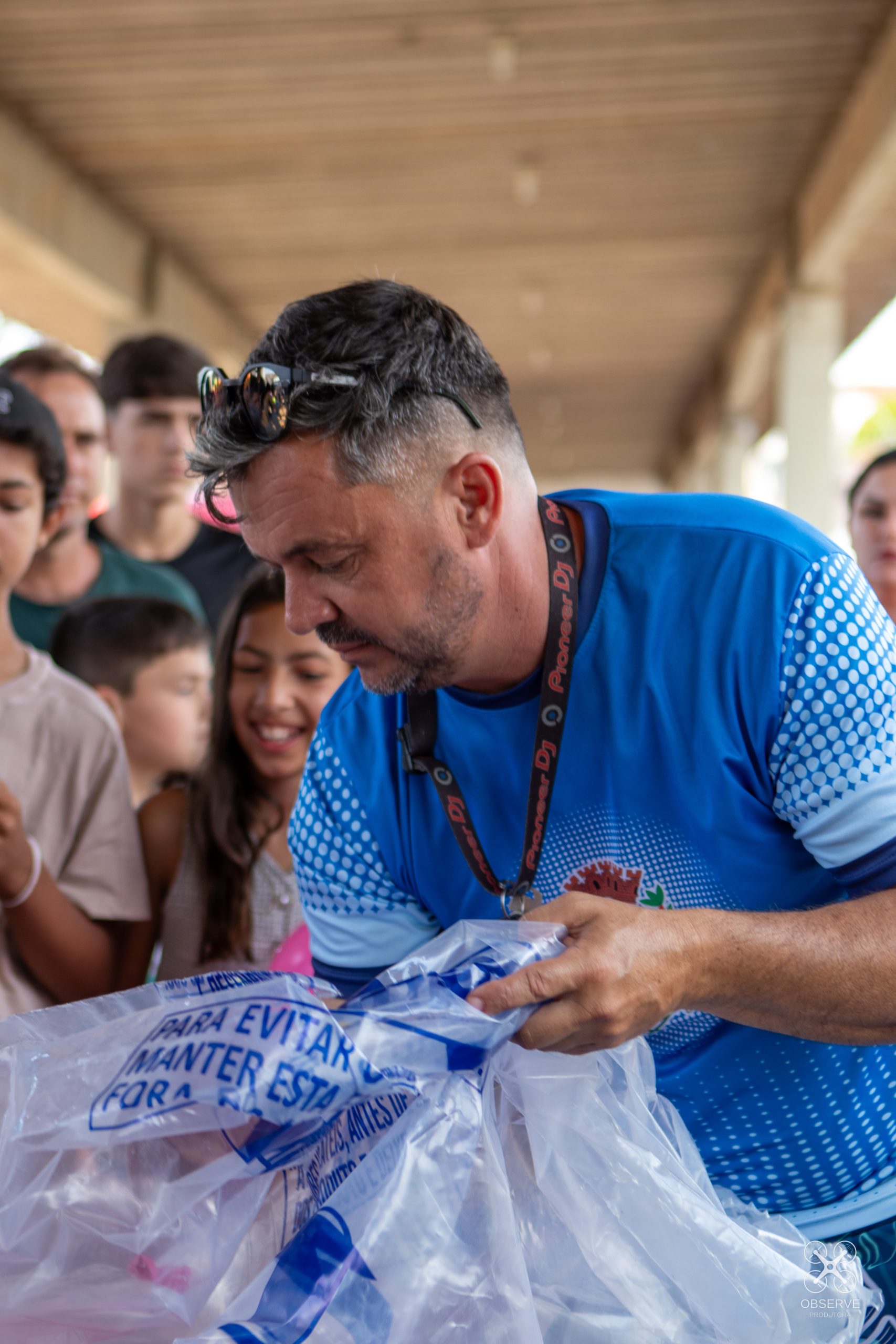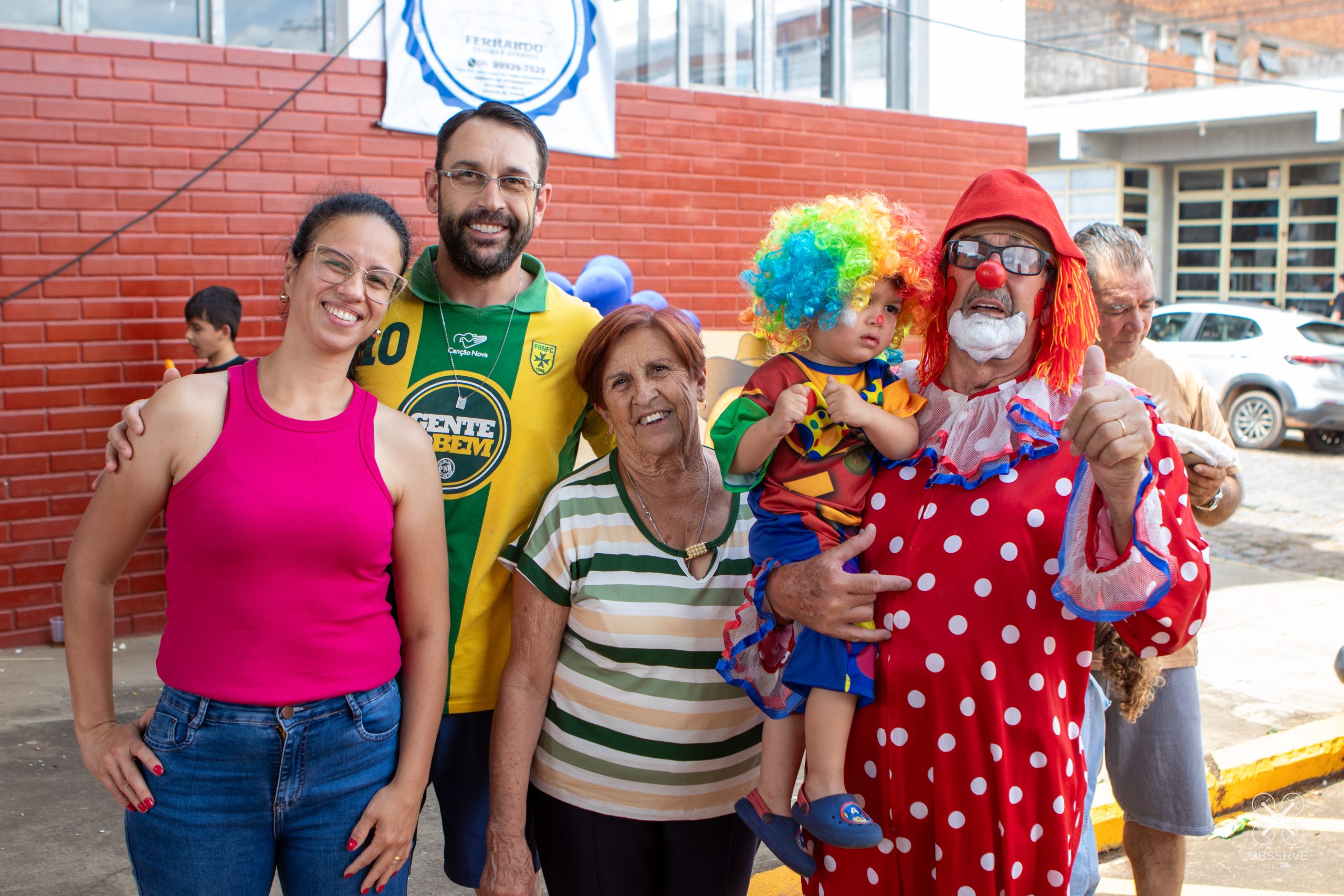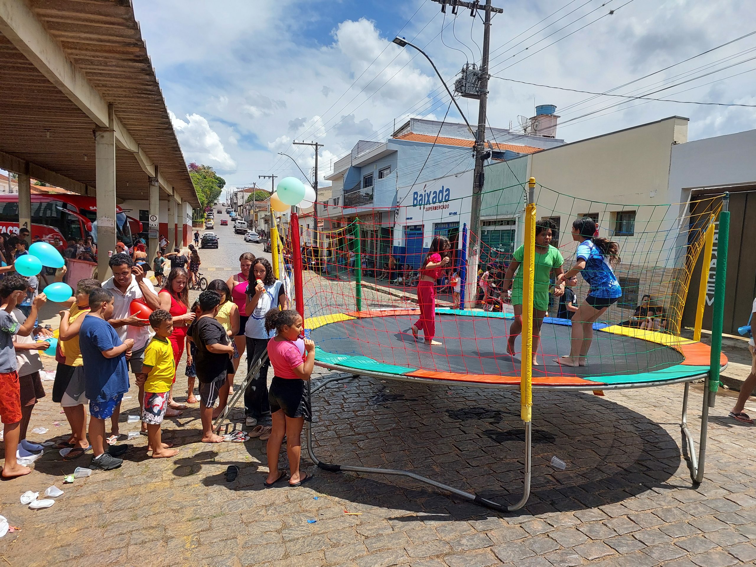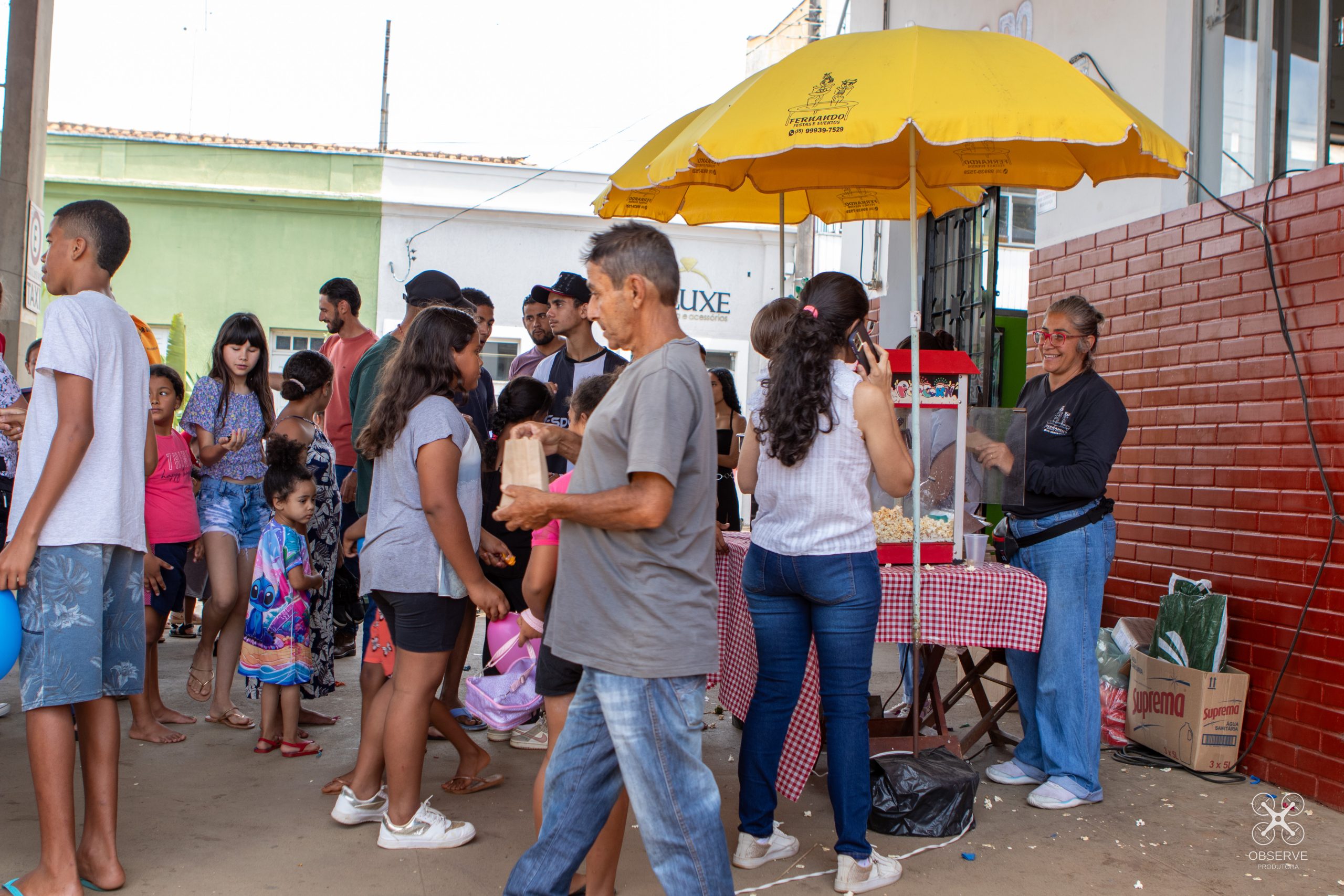 Em seguida, crianças e famílias de todos os bairros da cidade tem livre acesso à festa das crianças, recebendo carinho e atenção. Além de brinquedos, foram distribuídos 2200 pães, 2000 sorvetes, 70 fardos de 6 unidades de guaraná, pipoca e algodão doce. O som esteve a cargo do competente Cláudinei Romão.
