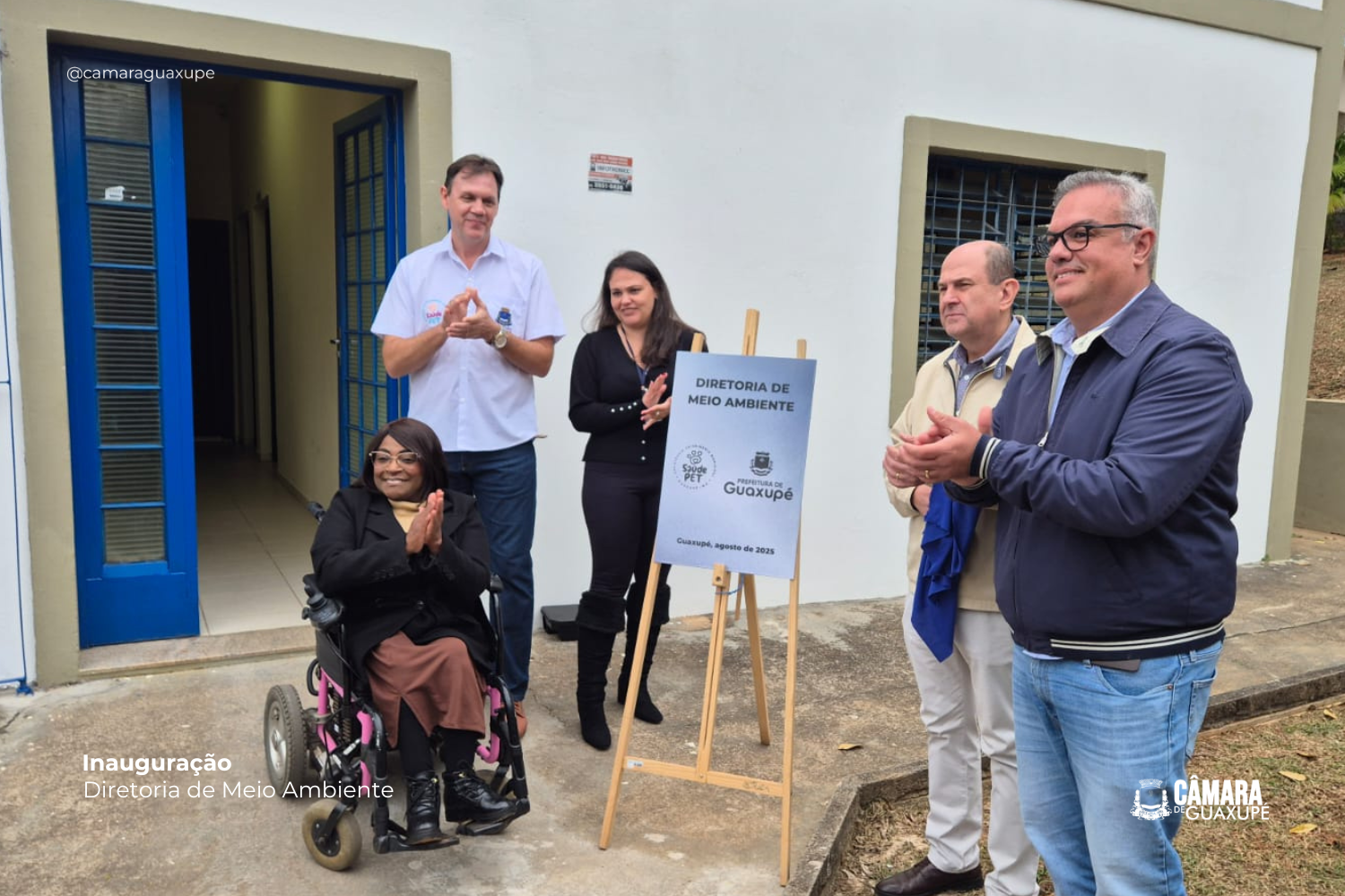 Na manhã de terça-feira (05/08), foi inaugurada a nova sede da Diretoria de Meio Ambiente de Guaxupé. A cerimônia contou com a presença de autoridades municipais, incluindo vereadores da Câmara Municipal. Participaram do evento o vice-presidente da Casa Legislativa, vereador Danilo Martins de Oliveira (União), além dos vereadores Carlos Alberto da Silva Júnior (PSD), João Inácio Silva Citton (Republicanos), Marcelo Braghetta Pedroza (PL), Mônica Ribeiro de Magalhães Reis (União), Pedro Luiz Alves (Agir) e Rosilene Aparecida da Silva (PL).