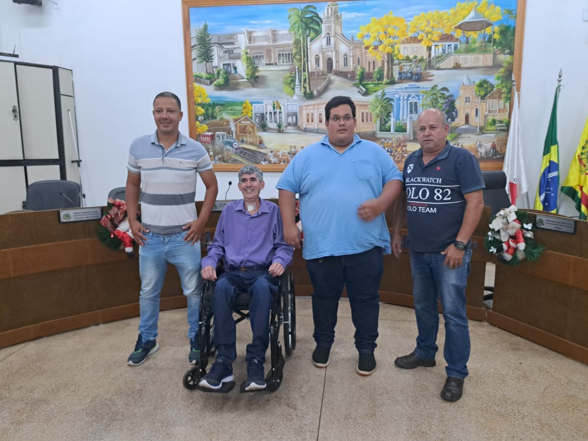 – 11 horas, a presença do jovem vereador Vinícius Madeira, que mesmo ocupando o primeiro mandato, foi eleito para a presidência da Câmara de Guaranésia no biênio 2023/24.