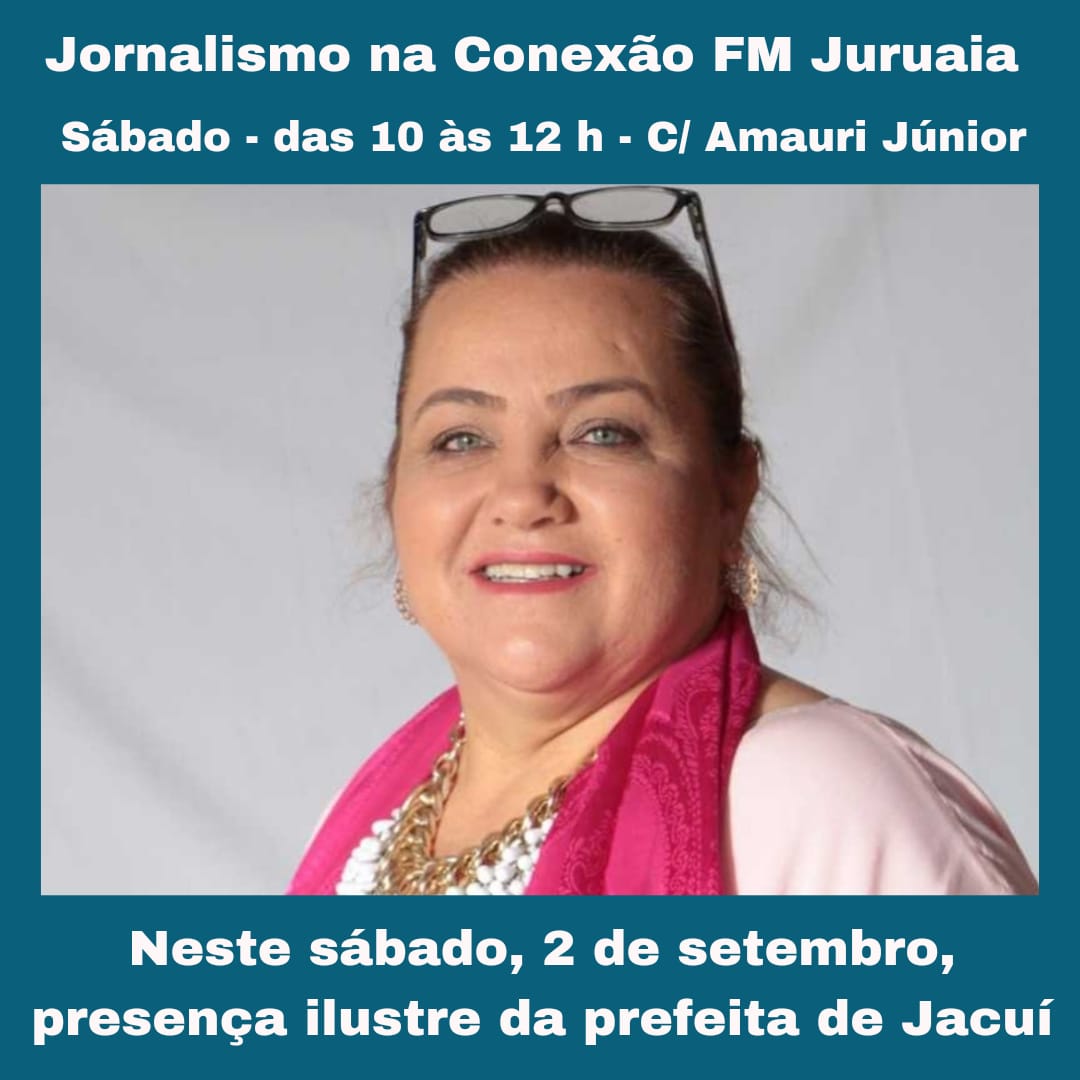 A partir das 10 horas, um programa especial com a prefeita de Jacuí, Maria Conceição dos Reis Pereira, a “Professora Di”. As ações da administração municipal, equipe de governo e conquistas mais recentes. A importância da eduação para a formação de uma sociedade.
