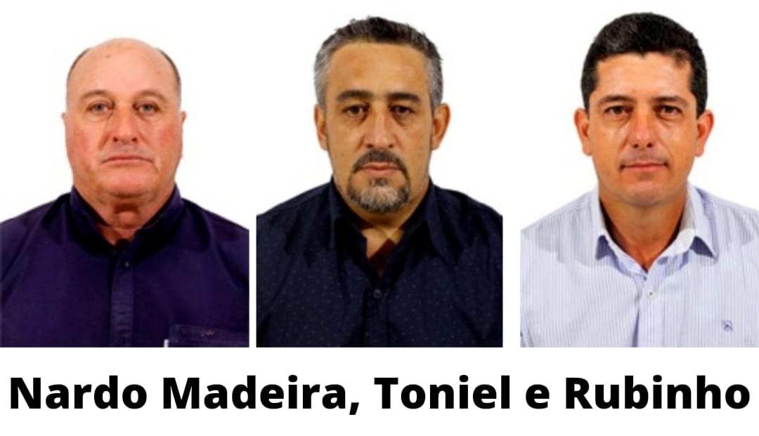 – 11 horas, a Mesa Diretora eleita para o biênio 2023/24 no Legislativo de Juruaia: Presidente Nardo Madeira, Vice-presidente Toniel Trindade e Secretário Rubinho da Macena.